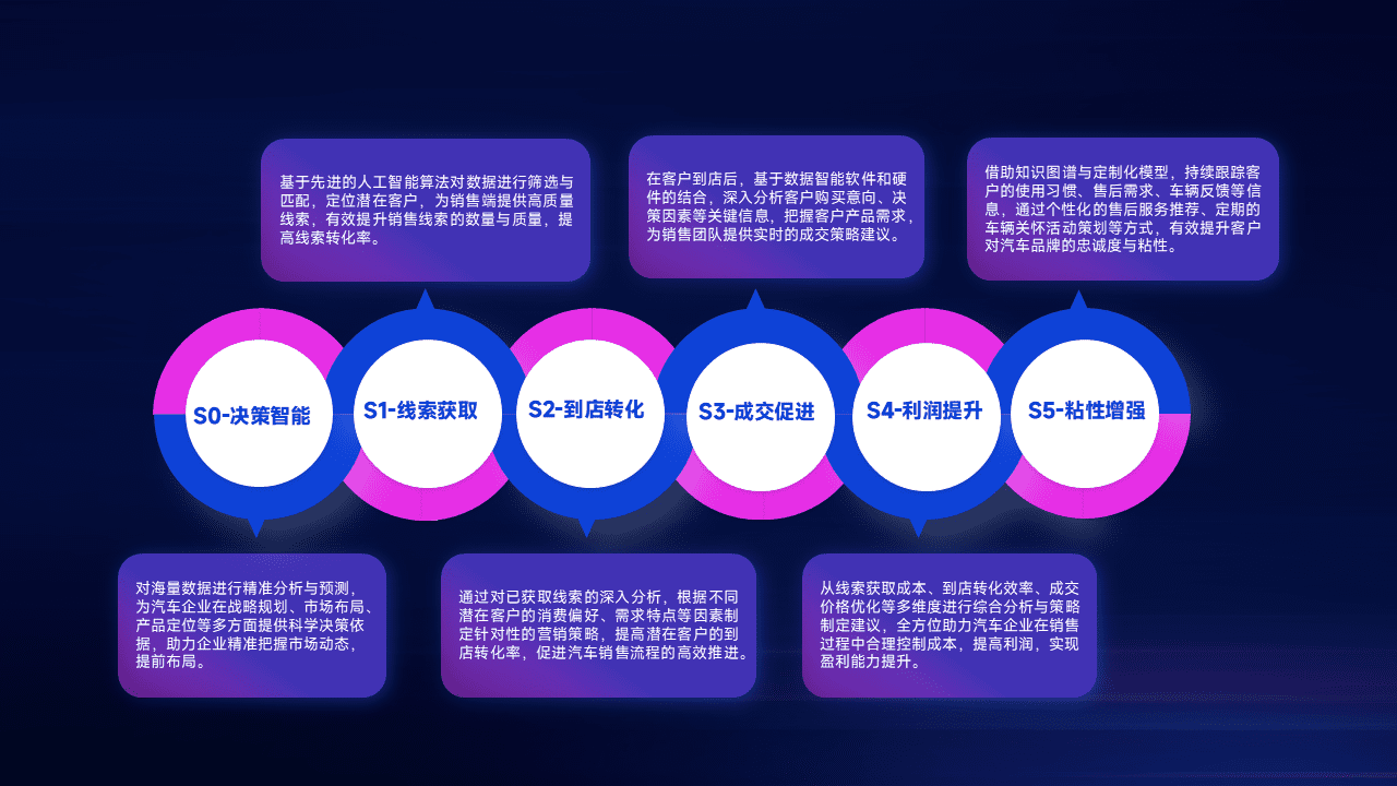 通过拓宽潜在客户来源、、优化线索分配并提高到店转化率,,,,以增强销售效率。。。。同时,,,,利用线索数据不断优化分析模型,,,,有效提升转化率,,扩大营销影响力。。